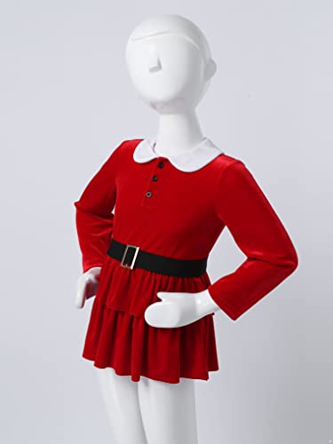 Freebily Vestito Bambina Principessa Elegante Rosso Natalizio Paillettes Tutu Maniche Lunghe Abito da Cerimonia in Velluto Morbido per Danza Pattinaggio Christmas Natale Rosso F 13-14 Anni