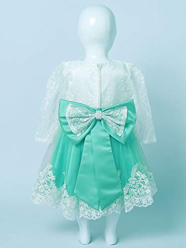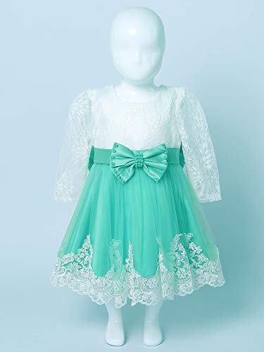 Freebily Vestito da Cerimonia Bambina Tutu del Partito Principessa Abito da Battesimo Elegante Ricamo Pizzo Floreale Matrimonio Sposa Abitni Festa Flower Girl Compleanno Verde 1-2 Anni