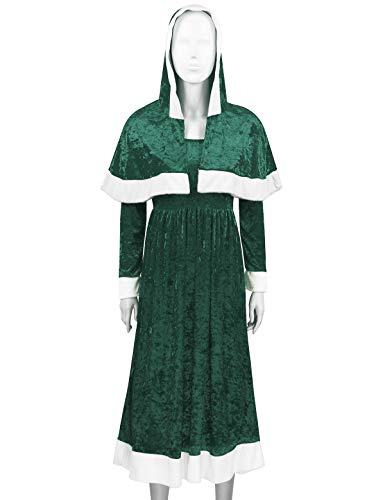 Freebily Vestito Donna Elegante Velluto Lungo Abito Natalizio Invernale Elegante Maniche Lunghe Babbo Natale Pupazzo Costume Natalizio Elfo Natale Abito Cerimonia da Festa Verde A XL