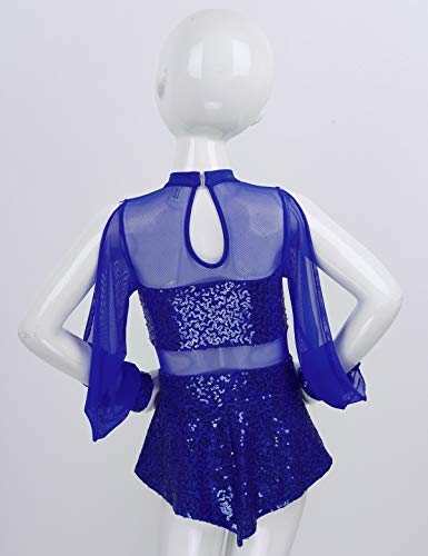 Freebily Vestito Pattinaggio Artistico Bambina Maniche Lunghe con Paillettes Costume Ballerina Carnevale Body Ginnastica Ritmica Dancewear Leotards Balletto Ballo Latino Blu 3-4 Anni