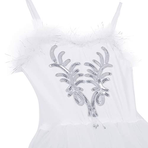 Freebily Vestito Tutu Balletto Ragazza Tutu Danza Classica Donna Ballerina Costume Carnevale Donna Top Paillettes Argento Abito Pattinaggio Artistico Bianco M