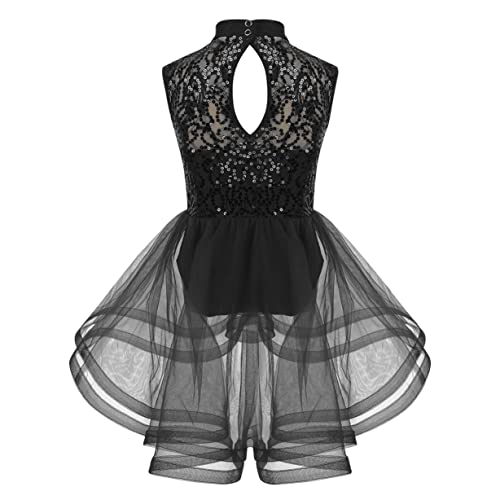 Freebily Vestito Tutu Bambina Ballerina Costume Danza Paillettes Principessa Abito Asimmetrico Corto Dancewear Vestiti Ballo Latino Bambina Abito Pattinaggio Artistico Nero 9-10 Anni