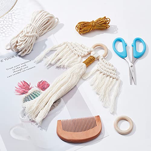 Angel Macrame Kit: la confezione include un cavo macramè bianco da 25 m, Filo dorato da 6 m/20 piedi, 3 pz anelli di legno, un pettine, e un metro a nastro. Tutto il materiale è imballato in una scatola, abbastanza per fare 3 angeli.