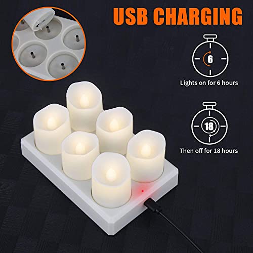 FREEPOWER 6 lumini a LED ricaricabili con telecomando timer, candele ricaricabili con stazione di ricarica, tazze di colore bianco caldo, dimmerabili, decorazione per interni Natale Halloween