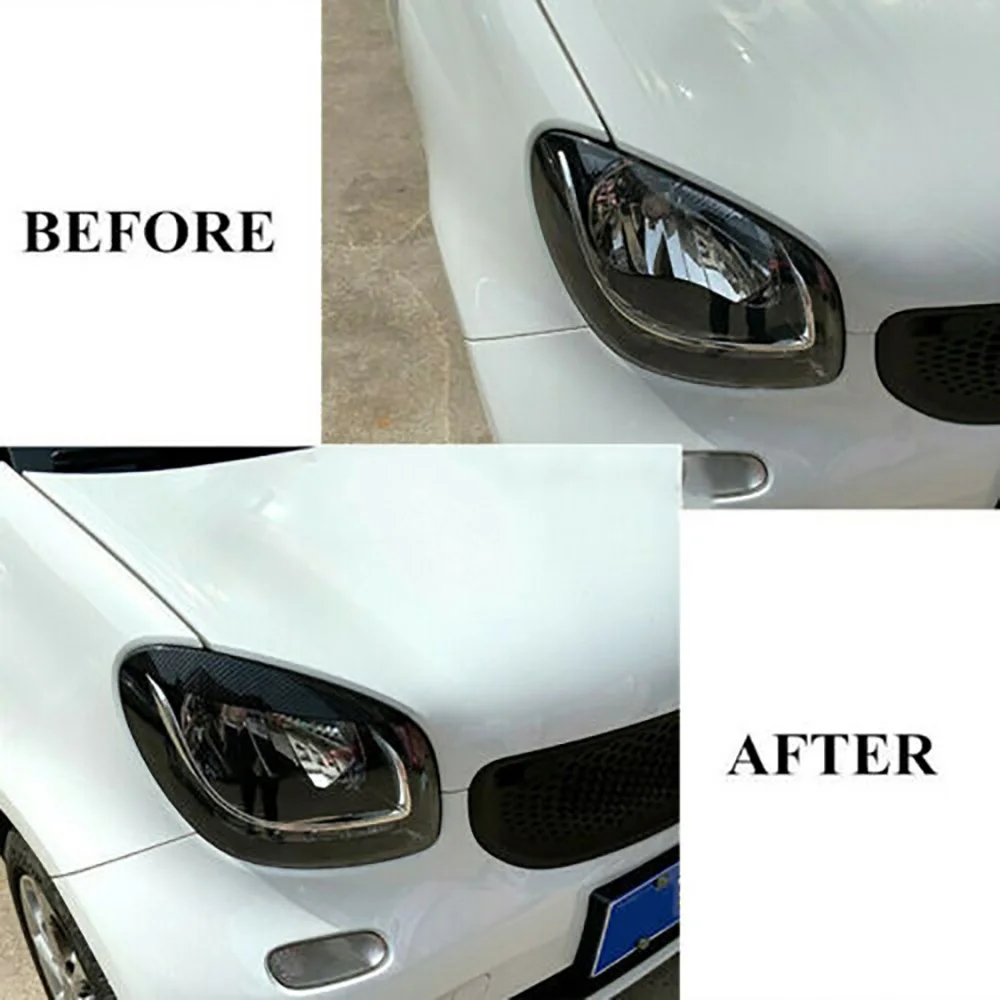 Freeshipping High Quality Carbon Fiber Headlamp Headlight Eyebrow Eyelids Cover Trim For Benz Smart 453