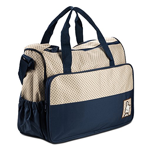 FREESOO Set di 5PCS Borsa Fasciatoio Multifunzione Borsa Cambio Neonato Sacchetto Pannolino per Biberon Materna Pannolino Mat con Grande Capacità Blu