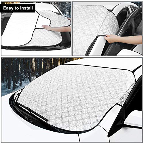 ➤ Dimensione della copertura del finestrino dell'auto 147X100 CM. La copertura del finestrino si adatta alla maggior parte delle auto. Si prega di misurare le dimensioni della targa dell'auto o di contattarci direttamente per confermare le dimensioni prima di acquistare la copertura del parabrezza dell'auto parasole.