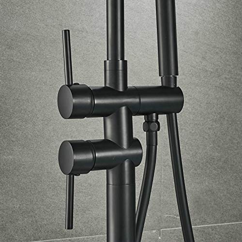 Freestanding Rubinetti per vasca, montaggio a pavimento miscelatore rubinetto per vasca con spruzzatore a mano, 2 maniglie, Nero, Beelee BL19001B