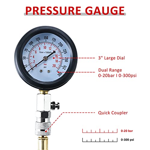 Tester di compressione di 0 - 20 Bar o 0 - 300 psi.
