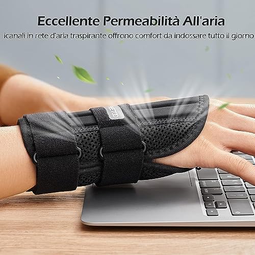 FREETOO Tutore Polso 3 Soggiorni Approvato Dal Medico,Polsiera Ortopedica Regolabile per Uso Giorno e Notte,Polsiera del Polso per Artrite, Tendinite, Distorsione,RSI e Protezione Sportiva