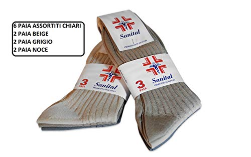 Frencis 6 Paia Calze Calzini SANITARIO UOMO Con Elastico Extra-morbido In 100% FILO DI SCOZIA RIMAGLIATO A MANO Per Diabetici MADE IN ITALY (ASSORTITO CHIARI, 12½13 (45-47))