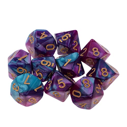 Freneci Set di Dadi a più Lati di 10 D10 Dungeons D&D Rpg Gioco di Ruolo - Viola + Blu, Come descritto