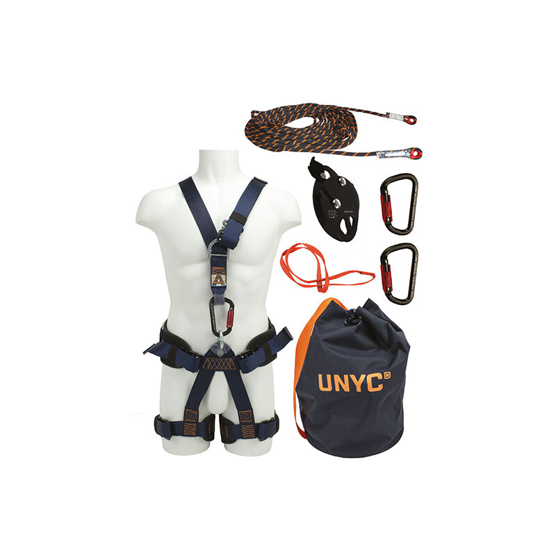 Le kit comprend: 1 harnais Master, 1 bloqueur antichute ROC,1 corde gaînée tressée 20 m, 2 mousquetons alu Ø20 mm, 1 anneau d'ancrage sangle 1 m, 1 sac de transport 20L Taille 1 ou 2 Poids de la pièce 13.35 kg Convient aux métiers du bâtiment, charpentiers, couvreurs, menuisiers, cordistes, pylonistes, élagueurs et travail sur échelle.
