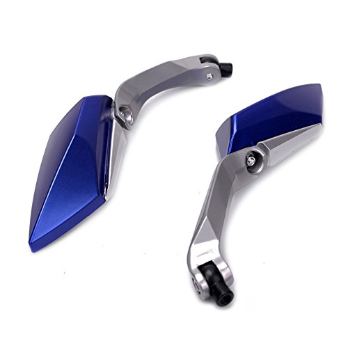 Frenshion Compatibile per Universal Specchietti Moto Specchio Posteriore 8 / 10mm Diamanti Mirror di Motocicletta Di Motociclo per Street Bike Sport Bike Scooter Cruiser Argento Blu