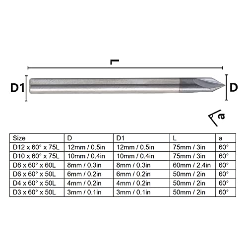 Fresa a candela con smusso da 60 gradi, fresa per fresatura a 3 scanalature in acciaio al tungsteno con fresa per lucidatura CNC(D4*60°*50L)