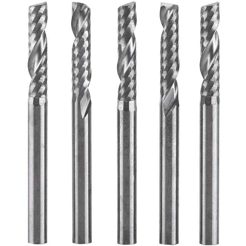 CARBURO CEMENTATO: queste frese sono realizzate in metallo duro a grana ultrafine con buone prestazioni di fresatura e taglio, garantendo un'elevata efficienza di lavoro ADATTA PER MOLTE MACCHINE: queste frese hanno un 1/8 tagliente e un diametro del gambo standard da 1/8 adatto a molte fresatrici o macchine da taglio CNC TAGLIO: una fresa a punta singola con un tagliente fornirebbe una superficie di taglio liscia e una rimozione dei trucioli QUANTITÀ: ci sono in totale 5 frese in questo set che sarebbero un ottimo sostituto per i tuoi strumenti MANIGLIA DI MATERIALI DIVERSI: queste frese possono essere utilizzate per tagliare acrilico, PVC, MDF, cartone a densità, legno e molti altri materiali morbidi