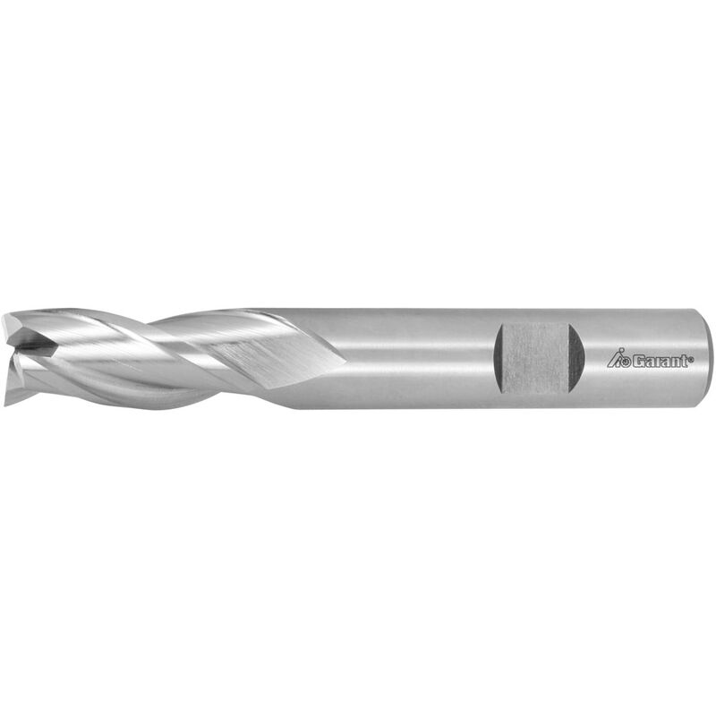 Geometria dei taglienti frontali per fresatura a tuffo. Spoglia eccentrica rettificata. Nota: Come frese per cave (tolleranza e8) o come frese a codolo cilindrico. 50% in più di capacità di truciolatura rispetto alle frese con 2 taglienti. Scanalature più ampie rispetto alle frese a più taglienti (ideale per materiali dolci). Per la fresatura di sedi per chiavette. Dati tecnici Uni m/min idoneo Acciaio < 500 N/mm² m/min idoneo a umido max. idoneo GG(G) m/min limitatamente adatto Alluminio (a truciolo corto) m/min limitatamente adatto CuZn m/min limitatamente adatto Acciaio < 900 N/mm² m/min limitatamente adatto Acciaio < 750 N/mm² m/min idoneo Passaggio interno per LR no Rivestimento non rivestito Materiale da taglio HSS Co 8 Tolleranza codolo h6 Modello N Colore collarino senza Norma DIN 844 B Tipo di prodotto Frese per spallamenti Angolo dell'elica, Grad 30 Tolleranza ⌀ nominale e8 Codolo DIN 1835 B con h6 ⌀ Tagliente DC, mm 20 Direzione di avanzamento orizzontale, obliquo e