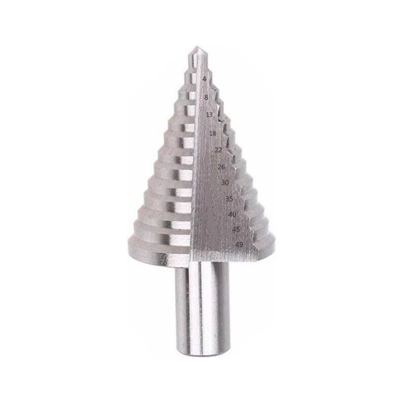 Fresa conica per trapano scalini gradini da 4 8 13 18 22 26 30 35 40 45 49 mm Fresa conica a scalini in metallo tipo hss. Le misure del foro sono le seguenti: 4-8-13-18-22-26-30-35-40-45-49mm. Caratteristiche: Gambo 10 mm Diametro: 4-8-13-18-22-26-30-35-40-45-49mm Contenuto della confezione: N 1 fresa in cofanetto di plastica