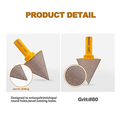 Molto utile per migliorare la finitura dei bordi dei fori esposti. Punta diamantata per una finitura liscia e di alta qualità. Bevel Ease Fase e antistress fori grossolani in ceramica e gres porcellanato