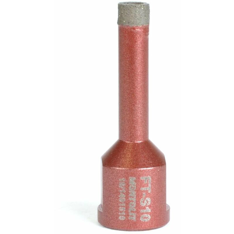 FRESA DIAMANTATA A SECCO E UMIDO Ø 10 MM MONTOLIT KILLER GRES FT-S10 Fresa diamantata a settori. Utilizzo: ad acqua ed a secco Materiali: tutti i tipi di ceramica e gres porcellanato, klinker, granito. Applicazioni: installazione mobilia e sanitari, impianti elettrici e terminazioni di impianti idraulici. Prestazioni: Velocità: molto elevata Finitura: media Durata: molto elevata Attrezzatura: smerigliatrice angolare/flessibile Utensile ravvivabile con l'utilizzo di apposita pietra abrasiva art. 395B Diametro: 10 mm h max utile: 40 mm Attacco filetto: M14