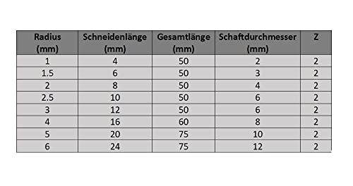 CNC, fresa a raggio VHM, raggio da 1 a 6 mm, fresa per codolo Ø da 2 a 12 mm, con raggio completo, in metallo duro HM, per la lavorazione in alluminio e plastica - R1.5