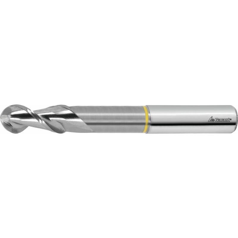 Eccellente evacuazione dei trucioli, grazie ad una lucidatura supplementare delle pareti dell'elica. Lunghezze simili a DIN 6527. Dati tecnici Aria limitatamente adatto PMMA acrile m/min adatto a secco limitatamente adatto PF 31 m/min adatto CuZn m/min adatto PEEK m/min adatto PE-HD m/min adatto Honeycomb sandwich m/min limitatamente adatto a umido max. idoneo Cu m/min adatto Alluminio (a truciolo corto) m/min idoneo a umido min. limitatamente adatto PA 66 m/min adatto Alluminio m/min adatto Alluminio > 10% Si m/min idoneo Codolo DIN 6535 HA con h6 Tolleranza ⌀ nominale f8 Materiale da taglio HMI Modello W Tolleranza codolo h6 Norma Norma interna Passaggio interno per LR no Rivestimento non rivestito Direzione di avanzamento orizzontale, obliquo e verticale Colore collarino giallo Larghezza di fresatura ae per operazioni di fresatura 0,03×D per fresatura a copiare Qualità equilibratura con codolo G 2,5 con HA Tipo di prodotto Frese a raggio completo e sferiche Angolo dell'elica, Grad