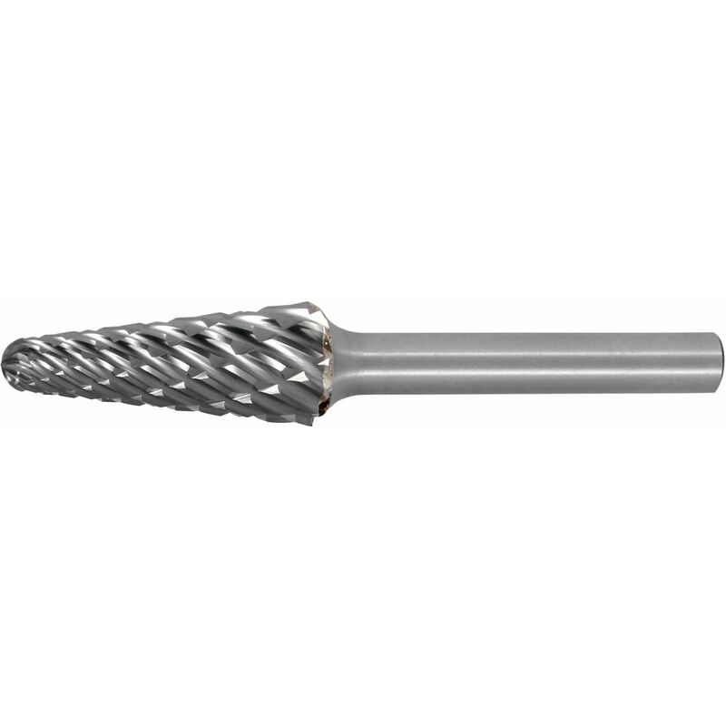 L'innovativa geometria dei denti permette elevate prestazioni di truciolatura e contemporaneamente rotazione regolare e facilità d'uso. La formazione ottimale dei trucioli (non appuntiti) consente di ottenere un'elevata qualità superficiale. ⌀ codolo 6 mm. Uso: Ottimizzata per la lavorazione di acciaio e fusione. Dati tecnici Acciaio < 1400 N/mm² m/s idoneo Acciaio < 900 N/mm² m/s idoneo Acciaio < 60 HRC m/s idoneo Acciaio < 67 HRC m/s idoneo GG(G) m/s idoneo Acciaio < 55 HRC m/s idoneo Materiale da taglio HM Tipo di prodotto Fresa rotativa ⌀ Testa, mm 10 Lunghezza della testina, mm 20 Lunghezza complessiva, mm 60 ⌀ Gambo, mm 6 della forma Conica tonda Sigla della dentatura STEEL Grado di finezza della dentatura grosso Forma L1020