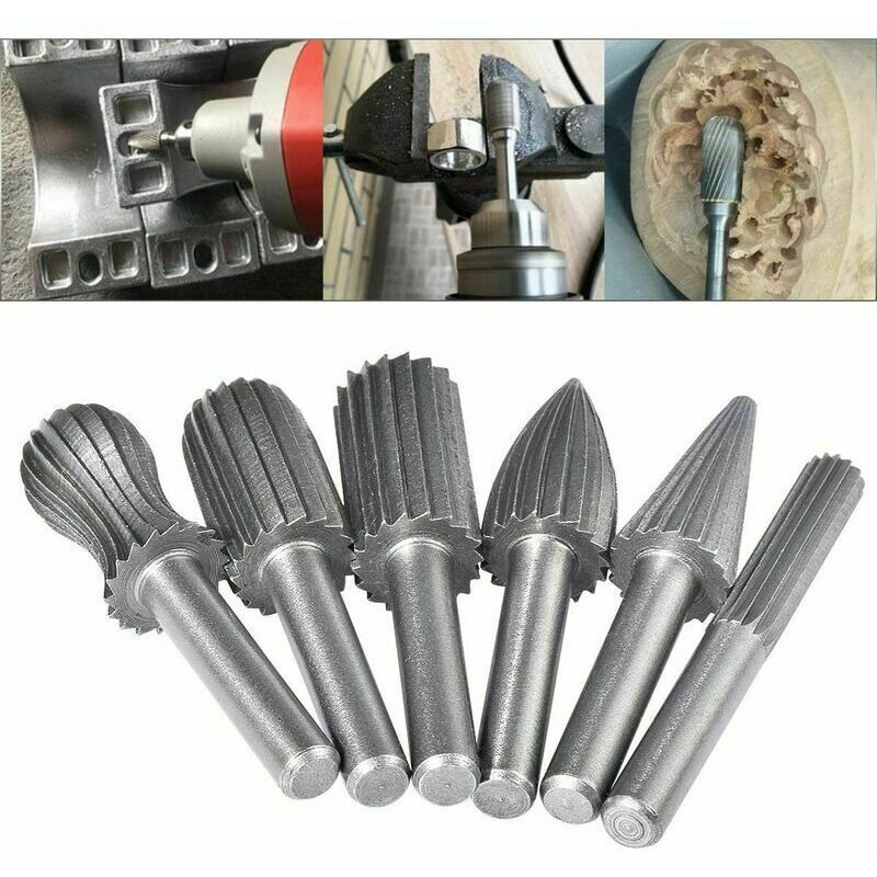 Progettato per professionisti e fai-da-te. Include 6 forme comuni: cilindro a cupola, albero arrotondato, arco concavo con punta a sfera, cono, cilindro, cono invertito. La doppia camera è più adatta per materiali a densità relativamente bassa. Dimensioni universali: gambo da 6 mm, compatibile con tutti i trapani elettrici e senza fili, utensili pneumatici, smerigliatrici e altri utensili rotanti. Durevole e affidabile: la durezza della lavorazione raggiunge fino a HRA85. Può sostituire una piccola mola per la maggior parte dei lavori, senza creare inquinamento da polvere. Lavorazione di tutti i tipi di metalli (compresi tutti i tipi di acciaio temprato) e materiali non metallici (come marmo, osso, giada). Impiego su trapani, presse, torni, apparecchiature elettriche o pneumatiche manuali o ad albero flessibile. Può sostituire una piccola mola per la maggior parte dei lavori, senza creare inquinamento da polvere. Sicuro e affidabile, può ridurre l'intensità del lavoro.