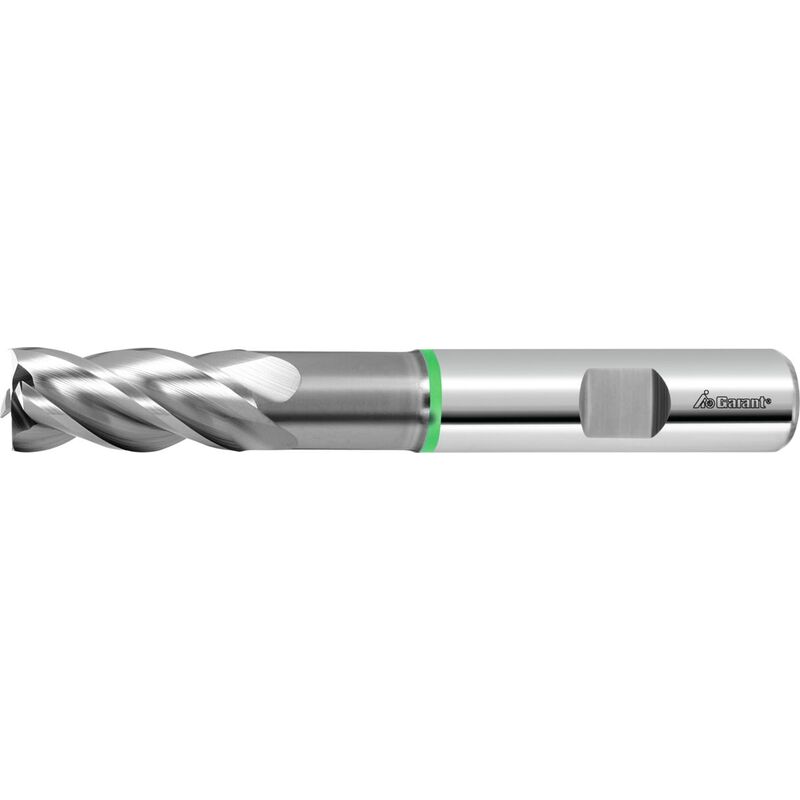 DescrizioneEsecuzione:Per sgrossatura e finitura fino a 0,7×D dal pieno a valori massimi di avanzamento ed elevata silenziosità.Vantaggi:Forma delle scanalature ottimizzata, spoglia eccentrica rettificata, elevati volumi di trucioli.Dati tecnici Serie GARANT Master Steel ⌀ tagliente DC 20 mm Rivestimento TiAlN Materiale da taglio HMI Norma Norma interna Modello N Tolleranza ⌀ nominale f8 Numero denti Z 4 Angolo dell'elica 38 ° Caratteristica angolo dell'elica differente Passo dei taglienti differente Direzione di avanzamento orizzontale, obliquo e verticale Larghezza di fresatura ae per operazioni di fresatura Scanalatura piena con profondità di taglio 1×D;