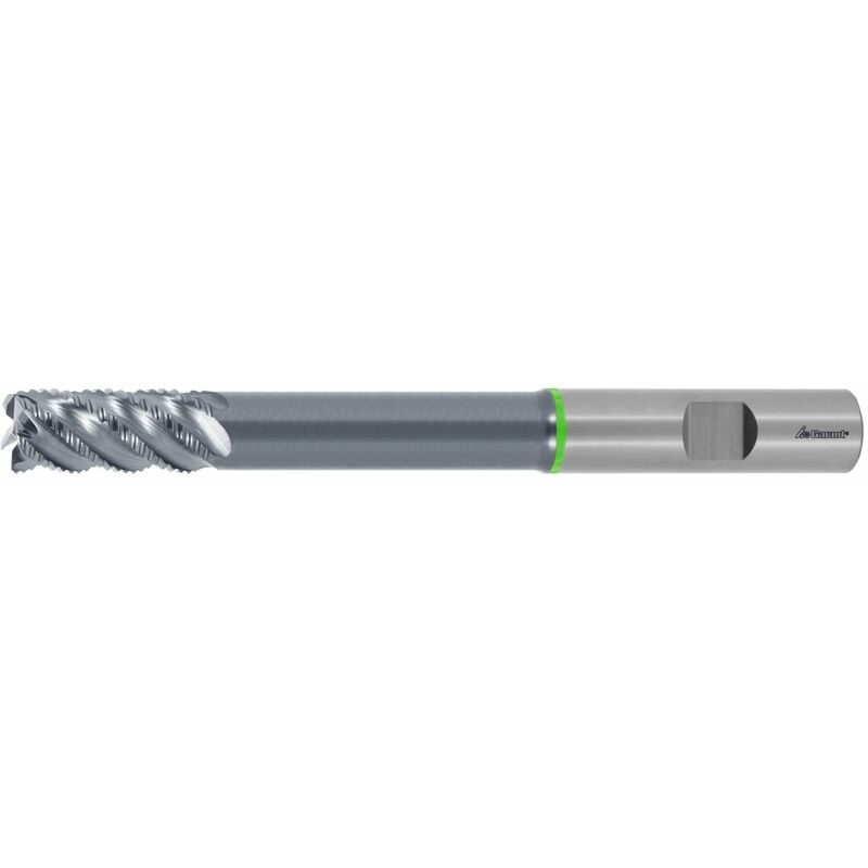 DescrizioneEsecuzione:Con innovativo profilo rompitruciolo, ottimizzato per elevati avanzamenti. Miglior protezione del tagliente grazie agli spigoli leggermente arrotondati. Elevata resistenza alla flessione mediante substrato a grana ultrafinissima.Vantaggi:La geometria dell'utensile consente la formazione di trucioli piuttosto arrotolati, che vengono eliminati tramite le scanalature piatte. Questo aspetto rende l'utensile estremamente stabile grazie al suo nocciolo robusto.Angolo di penetrazione fino a 10° grazie a un'ampia posizione libera frontale.Uso:Per lavori di sgrossatura.Nota:Codolo ribassato del colletto particolarmente lungo per aggirare gli ingombri bordi.Con rastremazione conica del codolo in modo da garantire stabilità in caso di sporgenze lunghe (vedi colonne D5 e D6).Dati tecnici Serie GARANT Master Steel ⌀ tagliente DC 8 mm Rivestimento TiAlN Materiale da taglio HMI Norma Norma interna Profilo fresa NR Tolleranza ⌀ nominale d11 Numero denti Z 5 Angolo dell'elica 42