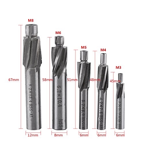 Fresa per svasatore, 5 pezzi Fresa per svasatore Fresa per scanalatura Utensile per punte da trapano M3-M8 4 taglienti HSS-AL