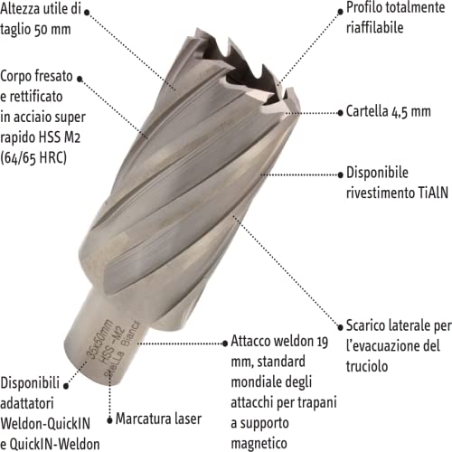 Frese HSS con attacco 19 mm per trapani a supporto magnetico h=50 mm
