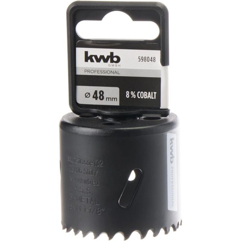 KWB - FRESA A TAZZA BIMETALLICA HSS-CO 48MM La lama della sega è adatta anche per il legno con parti metalliche resistenti incorporate come B. chiodi, viti e profili temprati. La sega a tazza bimetallica è particolarmente adatta per acciaio, ghisa grigia, acciaio strutturale, lamiere in acciaio inossidabile, alluminio, bronzo, rame, plastica, acrilico, cartongesso e legno. Con attacco a T / attacco a camma singolo adatto per la maggior parte dei seghetti alternativi disponibili in commercio di Einhell, Bosch, Metabo e molti altri (kwb Art. No. 624720) La sega a tazza ha un'elevata concentricità e una costruzione stabile, inoltre ha una filettatura M8 per l'albero di montaggio.