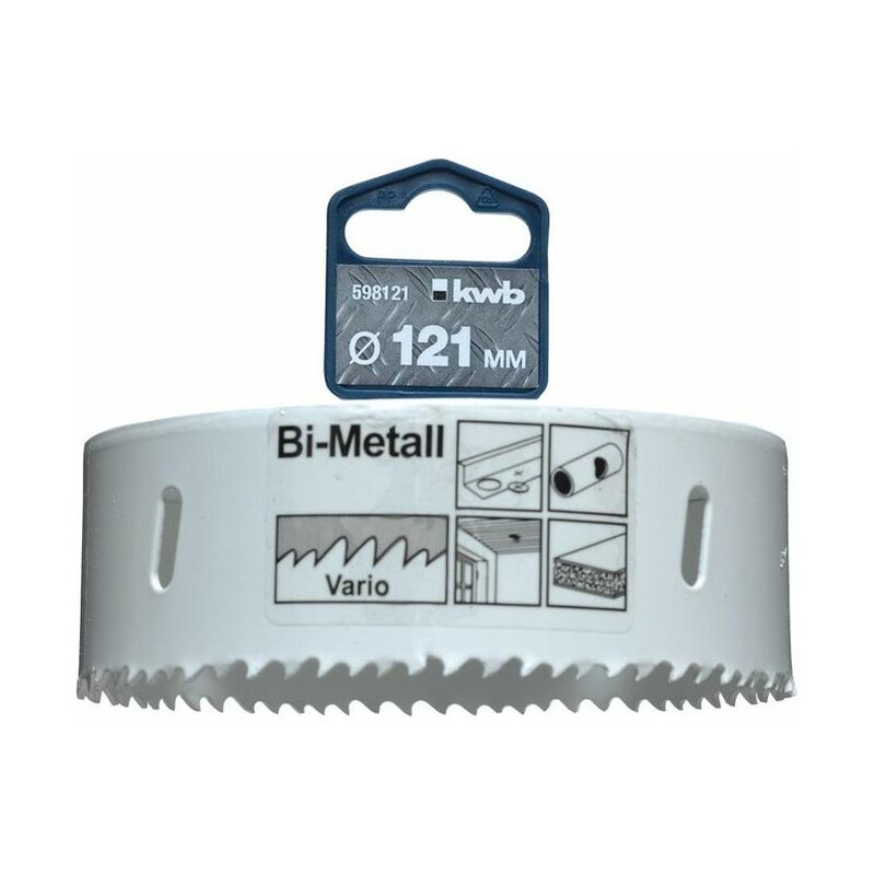 Kwb 598121. Tipo: Singolo, Adatto per: Trapano, Adatto per materiali: Alluminio, Rame, Cartongesso, Plastica, Acciaio, Legno. Diametro: 12,1 cm. Tipo di imballo: Sacchetto da appendere. Numero di seghe a tazza: 1 pz