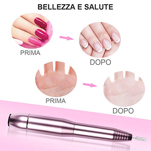 Fresa per Unghie, Kaliwa Trapano Elettrico per Unghie 11 in 1 - Fresa Unghie Portatile 20000 Giri/Min Kit di Elettrico per Manicure Pedicure con Strumenti di Lucidatura Set di Tagliaunghiev (Rosa)