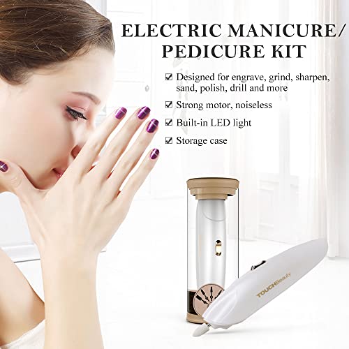 Fresa per Unghie Professionale, TOUCHBeauty 5 in 1 Set Manicure e Pedicure Elettrico, Luce LED, 5 Accessori e Scatola di Stoccaggio, D'oro