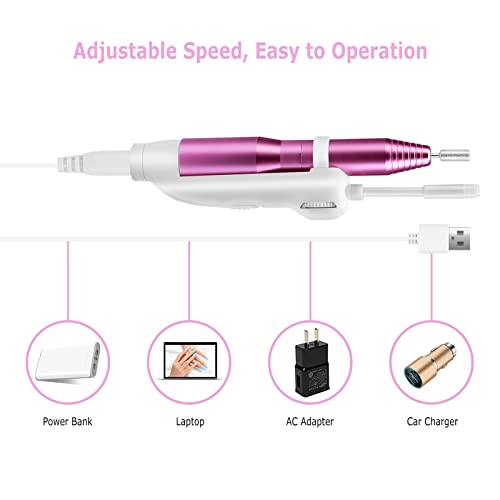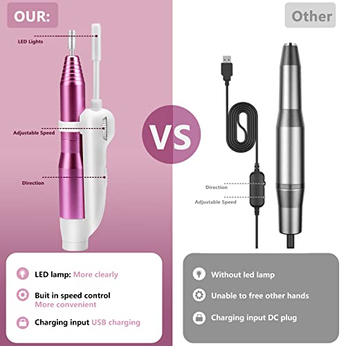 Fresa per Unghie, Trapano Elettrica Portatile USB 15000 RPM Velocità Regolabile, Kit di lime per Unghie Portatile con Luce LED per Principianti Unghie Acriliche Manicure