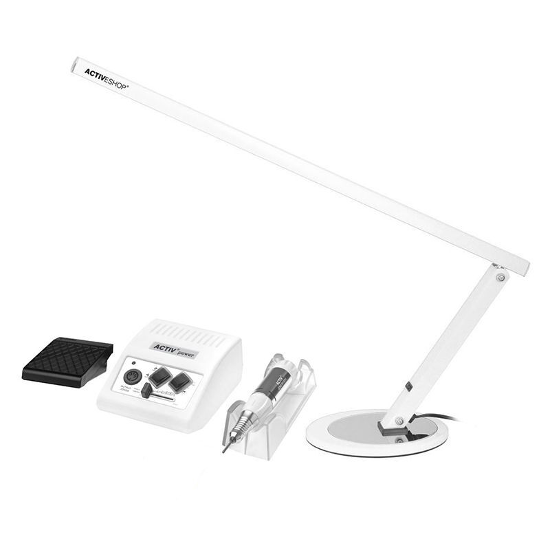 Una fresatrice facile da usare. La fresatrice JD500 di ACTIV Power è ideale per qualsiasi trattamento di manicure o pedicure. Questo dispositivo è stato progettato tenendo presenti le esigenze dei clienti. È adatto per l'uso domestico e facile da usare. Soddisferà le tue esigenze. La testa consente il funzionamento nell'intervallo da 0 a 30.000 giri al minuto. Garantisce un funzionamento stabile senza vibrazioni. Il controllo è possibile sia dalla base che tramite il comando a pedale. I bottoni alla base sono impermeabili. Possiamo facilmente controllare la velocità utilizzando il cursore. Il LED mostra se il dispositivo è attivo. Prenditi cura della tua vista. La sottile lampada in alluminio bianco ha un design moderno. La lampada può essere utilizzata nei saloni di bellezza durante l'esecuzione di trattamenti di manicure. Fornisce un'illuminazione molto buona con un colore freddo ed è destinata ai lavori in interni. Non dovrebbe essere esposto all'umidità diretta. Inizia a lavorare