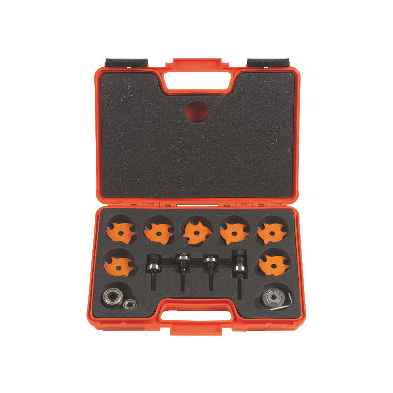 SET DI 7 FRESE A DISCO Z3 HW CON MANDRINI S=12.7 Questo versatile set di frese a disco vi consente di realizzare effetti decorativi o incastri funzionali. Variando la combinazione delle frese a disco potrete produrre canali, gradini, incastri a maschio e femmina, incastri per biscotti in legno e sedi per guarnizioni. Il set include 4 diversi cuscinetti per fresare diverse profondità di taglio: 8 - 9,5 - 12,8 and 14,3mm. Raccomandazioni di sicurezza: non utilizzare mai il kit di frese a disco senza gli spessori tra i dischi. Lo spessore tra ogni disco può variare da un minimo di 1mm ad un massimo di 1,7mm. Gli spessori devono essere usati anche tra il cuscinetto e le frese a disco.
