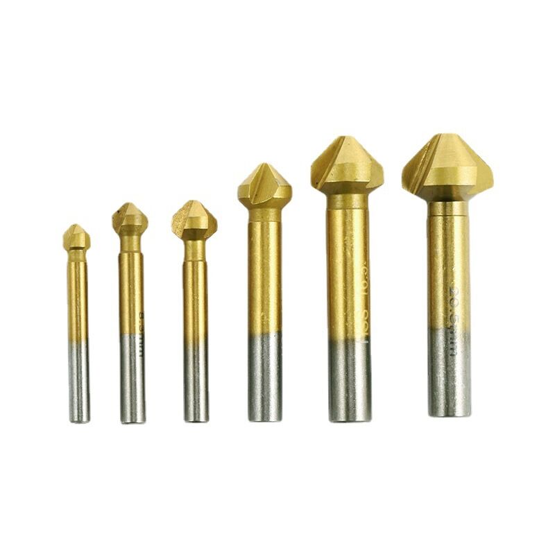 Le teste di perforazione di dimensioni universali sono compatibili con avvitatori a batteria e trapani comuni, compresi i trapani a colonna piastra centrale in ottone automatica adatta per lavorazioni su materiali metallici e non metallici, es. Acciaio al carbonio, lamiera d'acciaio, ferro, alluminio, isolamento, PVC, legno (morbido, duro), plastica, ecc. Le frese rivestite in titanio sono molto affilate e sono caratterizzate da elevata concentricità e durata. Gli strumenti si adattano perfettamente alle tue esigenze. Applicazione: Il set di 6 frese a 90° con 3 taglienti è adatto per la lavorazione di materiali metallici e non come acciaio al carbonio, lamiera d'acciaio, lamiera di ferro e alluminio, PVC, lamiera di legno, plastica, ecc.