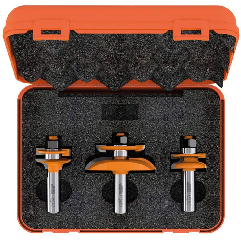 Il set include una coppia di frese per incastri maschio/Femmina ed una fresa per antine con contro profilo offerti all'interno di una solida e pratica scatola.