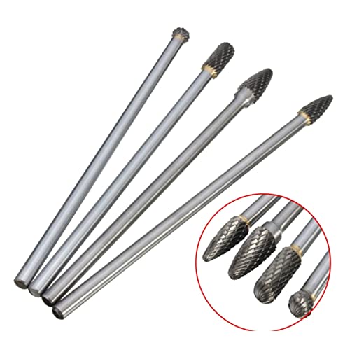 Set di 4 frese rotanti lunghe 14,5 cm in acciaio solido con gambo da 6 mm, adatte per utensili rotanti per la lavorazione del legno, codolo da 1/4"