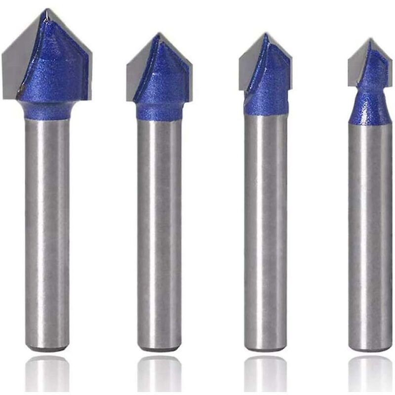 Set professionale di 90 punte per router, progettato per scanalature a V profonde o poco profonde. Forma: 90 v-scanalatura;