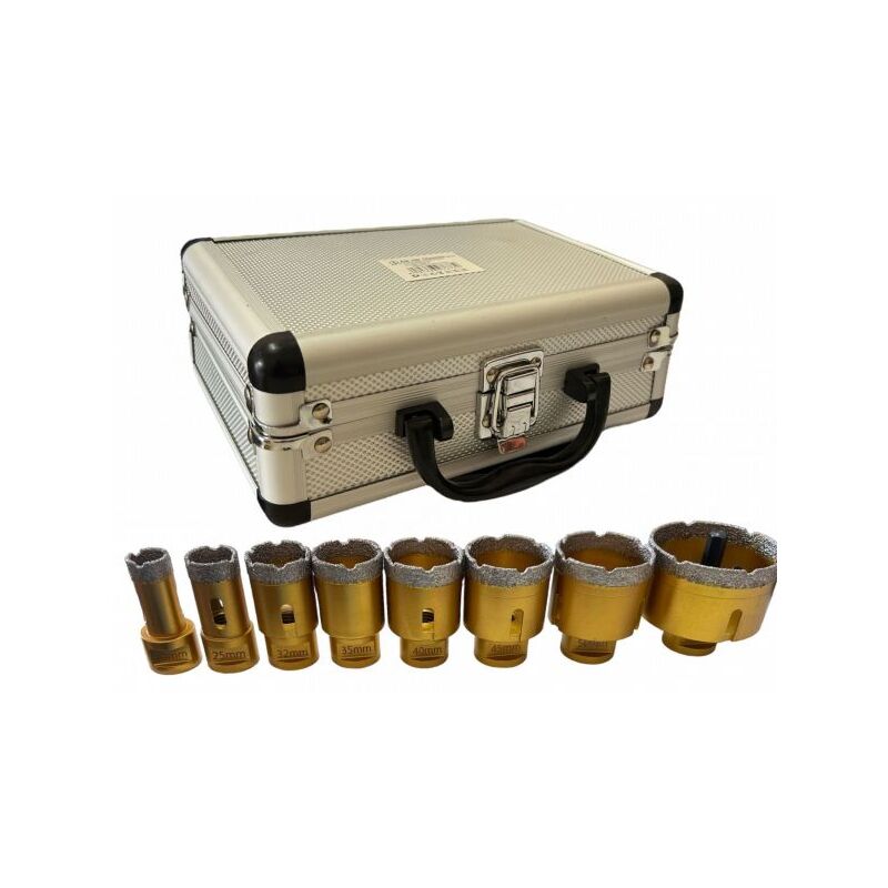 Set di 8 Frese a Tazza diamantate per smerigliatrice da 20 a 68mm ART.07673 Questo set di punte diamantate professionali di alta qualità, è adattabile sia con trapani oppure con smerigliatrici angolare con filettatura M14. La tecnologia di brasatura sottovuoto fornisce un taglio rapido, semplice e pulito. È adatto per porcellana, piastrelle, granito, marmo. Taglio efficiente e regolare Set di strumenti completo Struttura umanizzata Funzionamento semplice Caratteristiche tecniche: Materiale: Diamante Diametro delle frese: 20mm - 25mm - 32mm - 35mm - 40mm - 45mm - 50mm - 68mm La confezione contiene: Nr. 8 Frese diamantate Nr. 1 Codolo adattatore per trapano Nr. 1 Valigetta