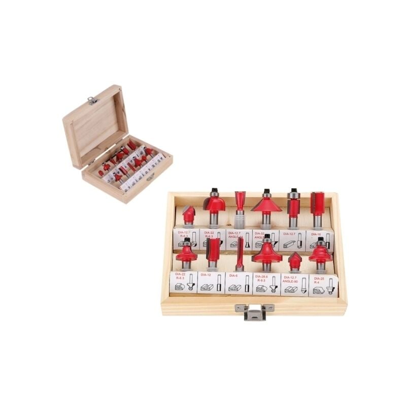 Set di 12 frese a cadolo con gambo da 6mm, in acciaio con due taglienti in widia, per pantografo o per fresatrice verticale in comodo box di legno. Ideali per la lavorazione del legno e per la lavorazione e creazione di cornici. Attrezzi indispensabili per falegnami e mobilieri. Punte riaffilabili. Caratteristiche tecniche - Dimensione gambo (mm): 6