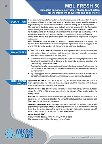 MBL FRESH 50 - ml. 1000 flacone “giustadose” - Attivatore biologico con azione deodorante per il trattamento degli scarichi e fosse settiche
