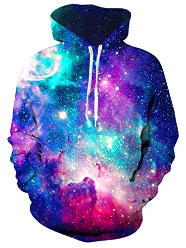 Freshhoodies Unisex Galassia Felpa con Cappuccio Stampato 3D Cielo Stellato Hoodie Tasche Coulisse Casual Sweatshirt Blu S