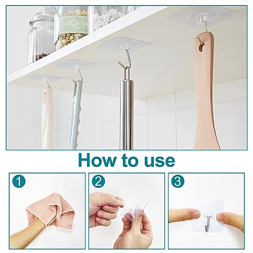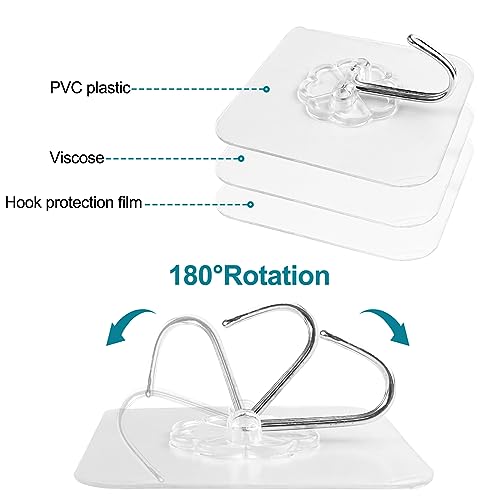 【Materiale】 I ganci adesivi trasparenti sono realizzati in acciaio inossidabile di alta qualità e materiale in PVC per garantire qualità e durata, anche con schizzi d'acqua e olio sulla parete, i nostri ganci possono rimanere forti.