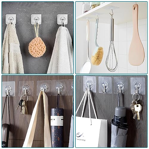 【Design Trasparente】 L'esclusivo design trasparente lo rende quasi invisibile, molto adatto per la decorazione domestica, i ganci adesivi trasparenti non rovineranno la bellezza della parete, del soffitto o della porta e non occupano spazio extra, rendendo la tua casa più organizzata e Ordinato.
