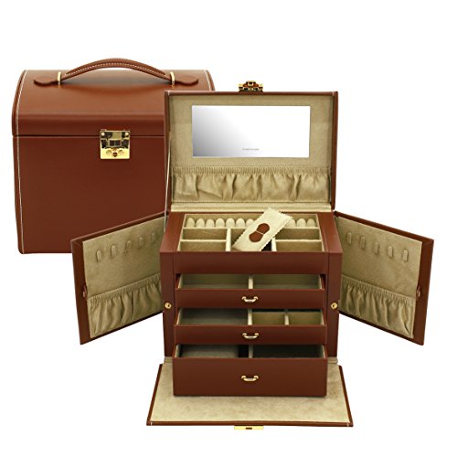 Elegante portagioie in vera pelle marrone lavorato a mano per conservare in modo ordinato gioielli e orologi, adatto anche per accessori per capelli come elastici per capelli e clip